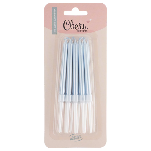 Свечи Голубой, Перламутр, 0,6*8 + 4 см, 10 шт. с держат., 620213B
