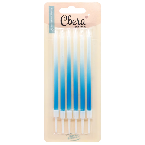 Свечи Голубое сияние, Градиент, 0,4*11 + 2 см, 6 шт. с держат., 803028