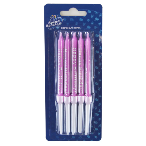 Свечи Happy Birthday, Розовый, Металлик, 8 см, 10 шт. с держат., 132523