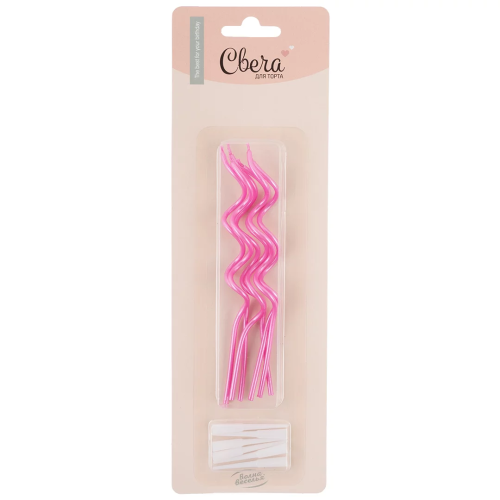 Свечи Коктейльные, Тонкие спирали, Розовый, Перламутр, 0,3*12 см, 6 шт. с держат., 620069P