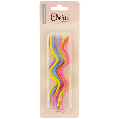 Свечи Коктейльные, Тонкие спирали, Тропическое ассорти, 0,3*15 см, 12 шт., 183555
