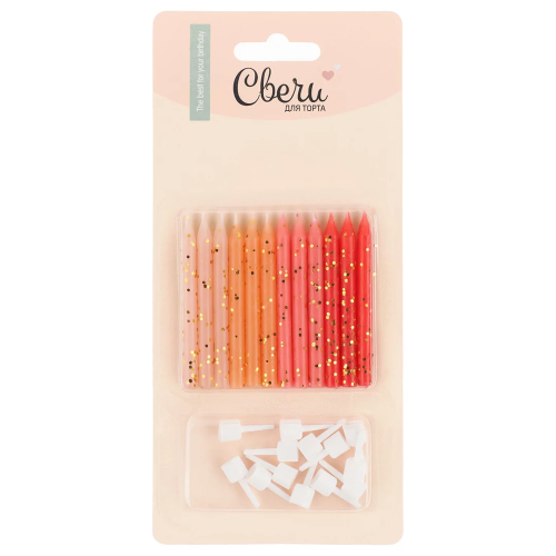 Свечи Красный микс, с блестками, 0,5*6 + 1 см, 12 шт. с держат., 803201
