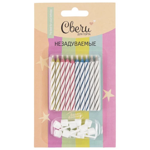 Свечи Негаснущие огни, Ассорти, 0,55*6 + 1 см, 10 шт. с держат., 131002