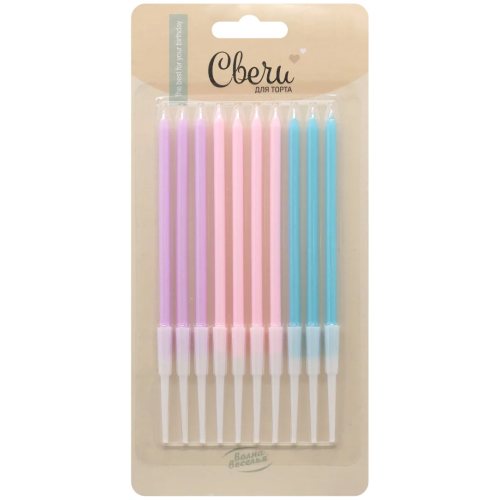 Свечи Нежная серия, Ассорти, Макарунс, 0,5*10,5 + 5 см, 10 шт. с держат., 802929