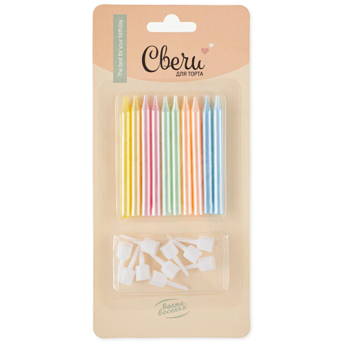 Свечи Нежный микс, Перламутр, 0,5*6 + 2 см, 10 шт. с держат., 803018