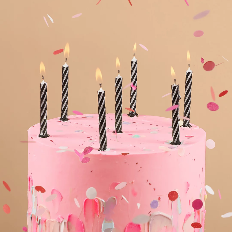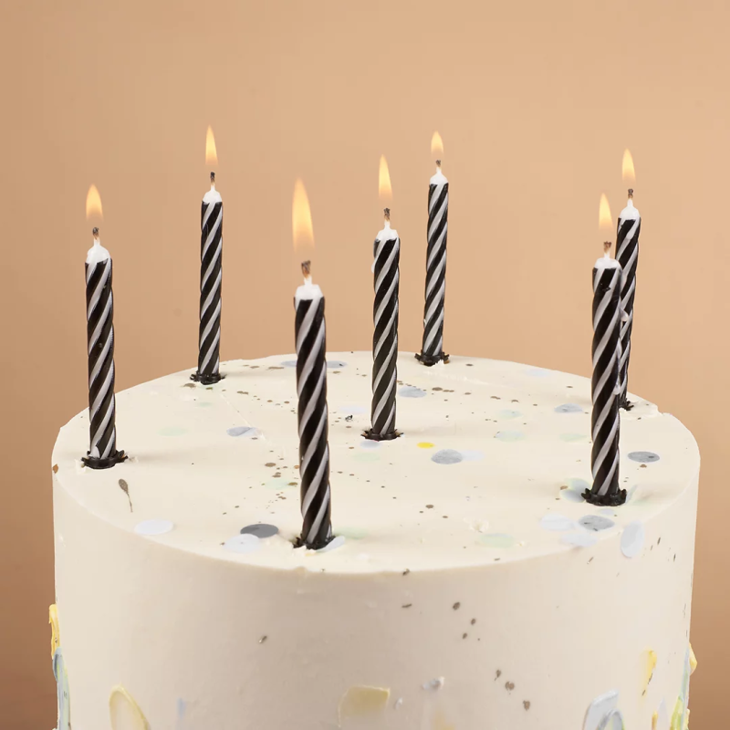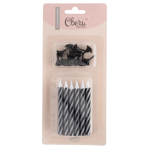 Свечи Полоски, Черный/Белый, 0,55*8 + 1 см, 12 шт. с держат., 630251