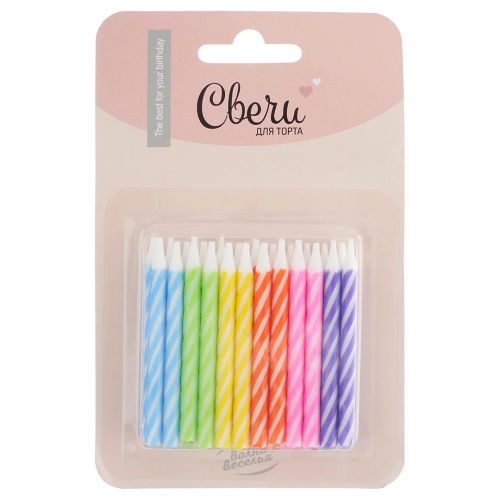 Свечи Радужный микс, Ассорти, 0,5*6 см, 24 шт., 620109
