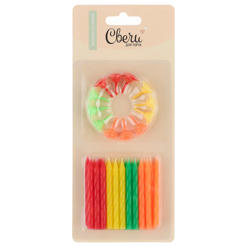 Свечи Радужный, Неон, 0,5*6 см, 24 шт. с держат., 102941