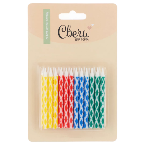 Свечи Ромбики, Ассорти, 0,5*6 см, 24 шт., 102401