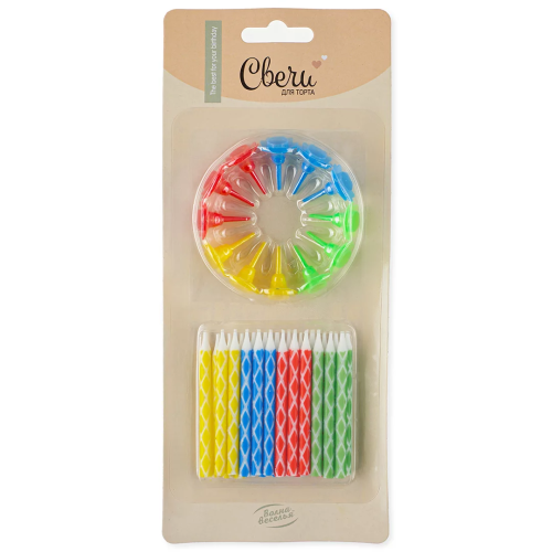 Свечи Ромбики, Ассорти, 0,5*6 см, 24 шт. с держат., 802918