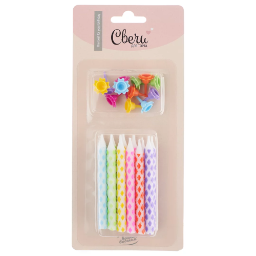 Свечи Ромбики, Ассорти, 0,7*8 см, 12 шт. с держат., 62014409
