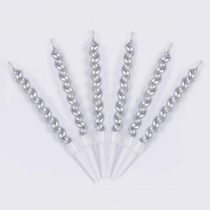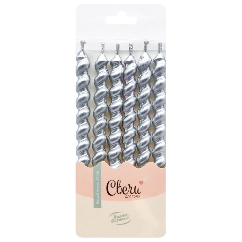 Свечи Роскошная серия, Серебро, Металлик, 0,7*7 + 2,5 см, 6 шт. с держат., 803038