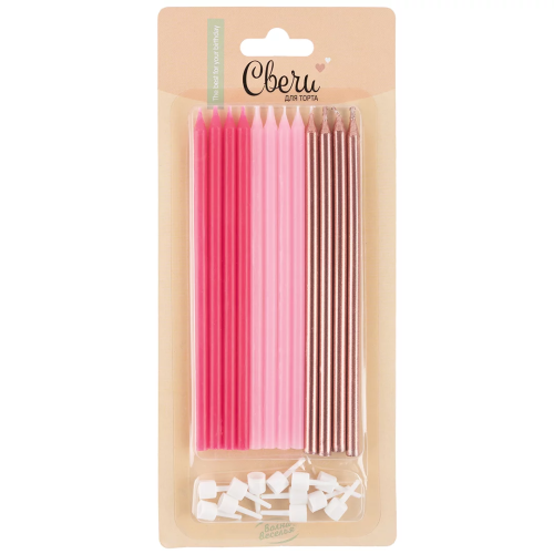 Свечи Розовый микс, Металлик, 0,6*14,5 см, 12 шт. с держат., 708022