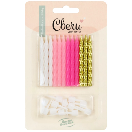Свечи Розовый микс, Металлик, 6 см, 12 шт. с держат., 132530