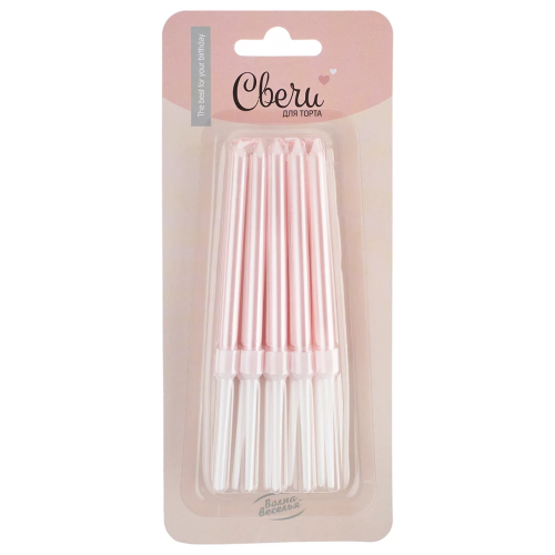 Свечи Розовый, Перламутр, 0,6*8 + 4 см, 10 шт. с держат., 620213P