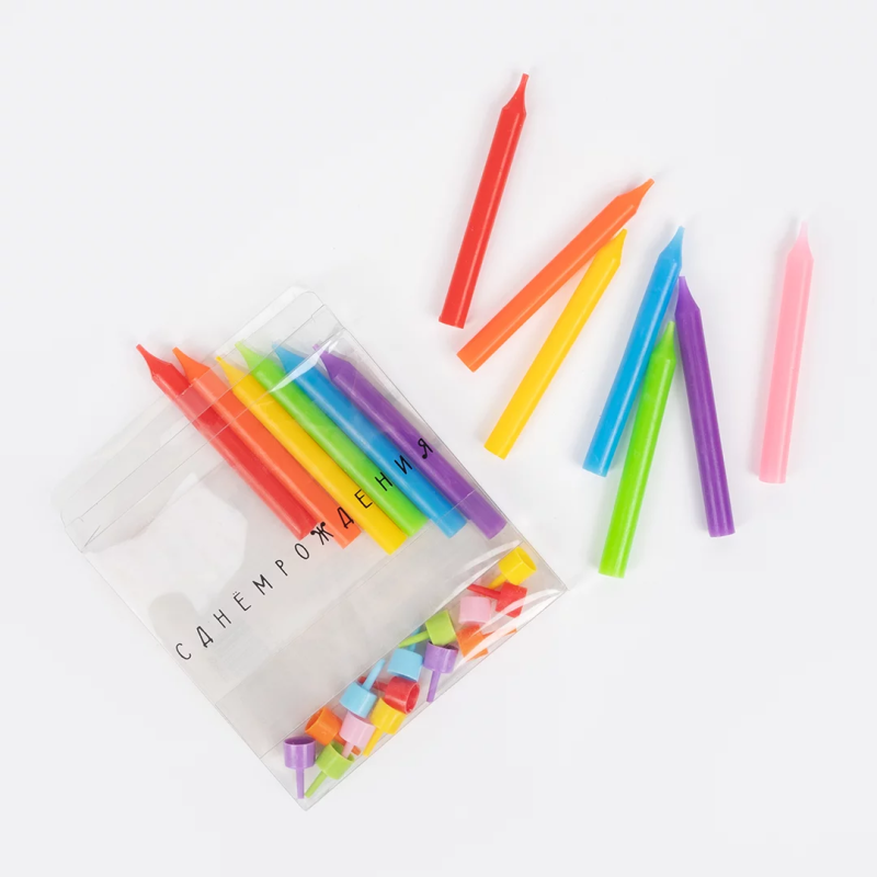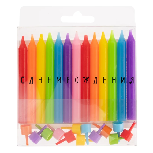 Свечи С Днем Рождения, Ассорти, 0,55*8 + 1 см, 12 шт. с держат., 630265