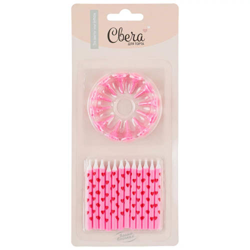 Свечи Сердца, Розовый, 6 см, 12 шт. с держат., 132442