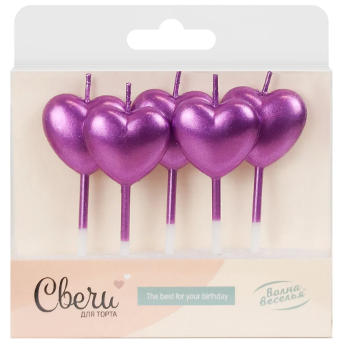 Свечи Сердце, Фуше, Металлик, 5 шт. с держат., 803261