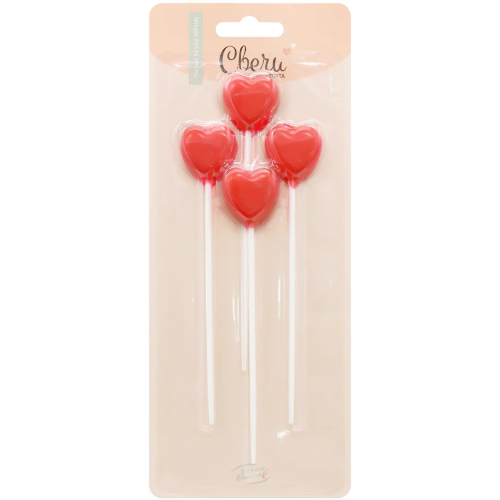 Свечи Сердце, на шпажке, Красный, 2,5*3 см, 4 шт. с держат., 802948