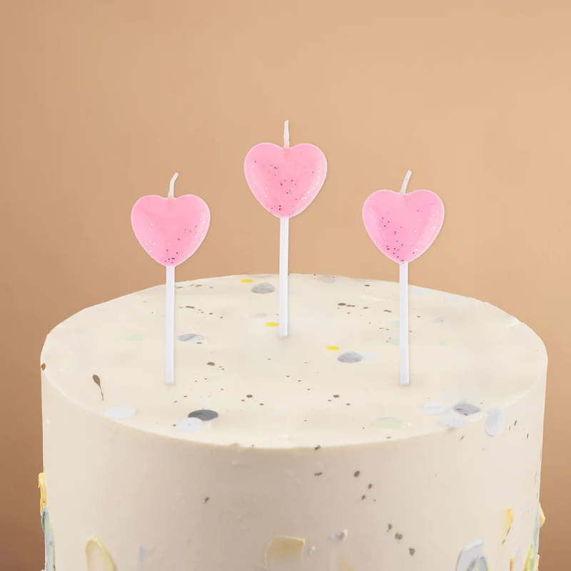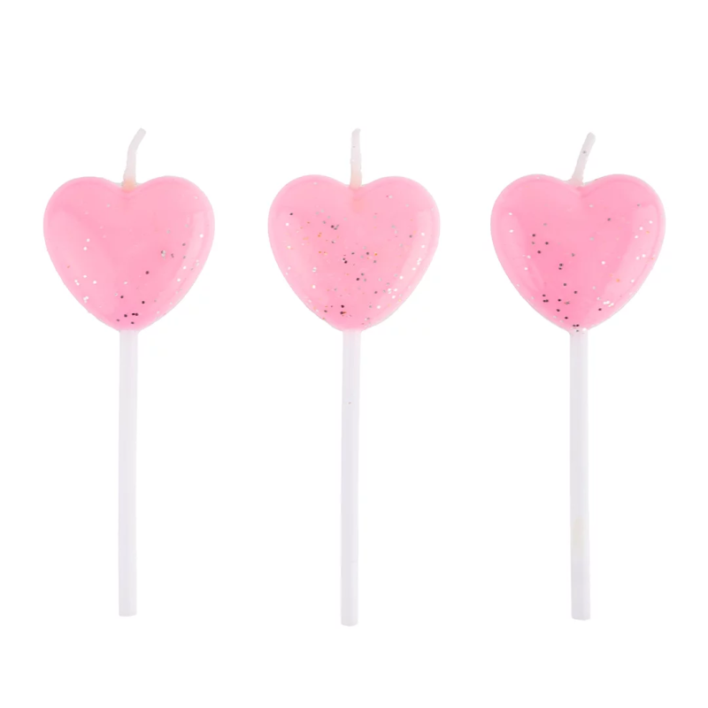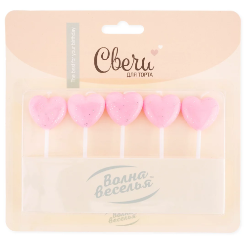 Свечи Сердце, Розовый, с блестками, 5 шт. с держат., 803032