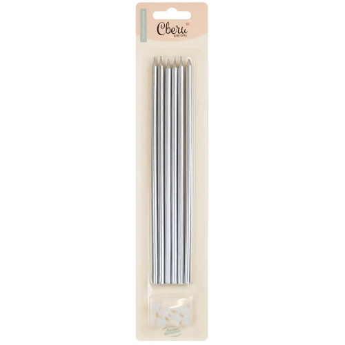 Свечи Серебро, Металлик, 18 см, 6 шт. с держат., 132528