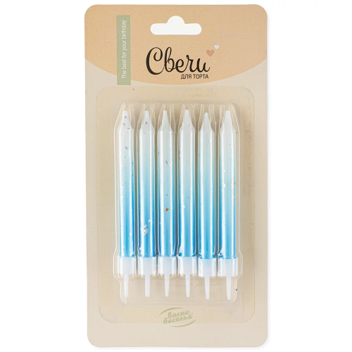 Свечи Серебряные искры, Белый/Голубой, Градиент, 0,7*8 см, 6 шт. с держат., 802960