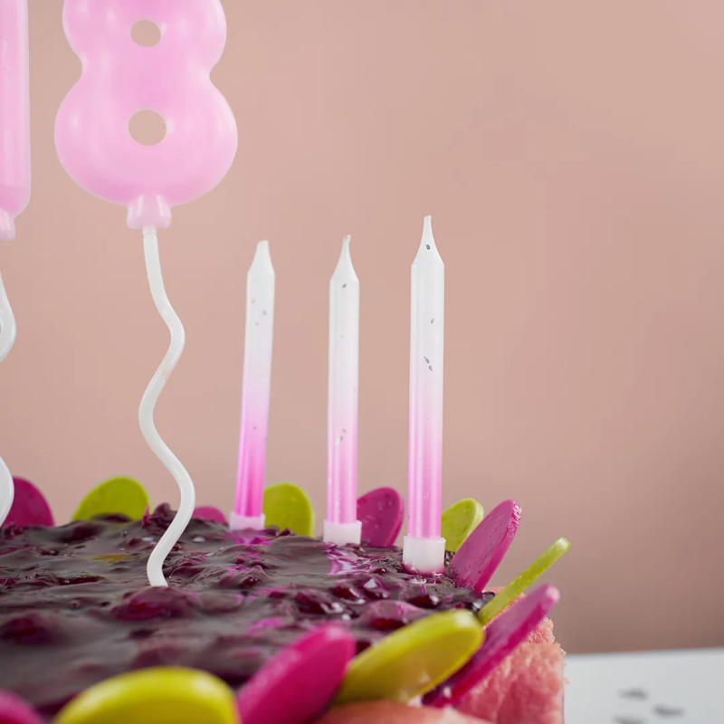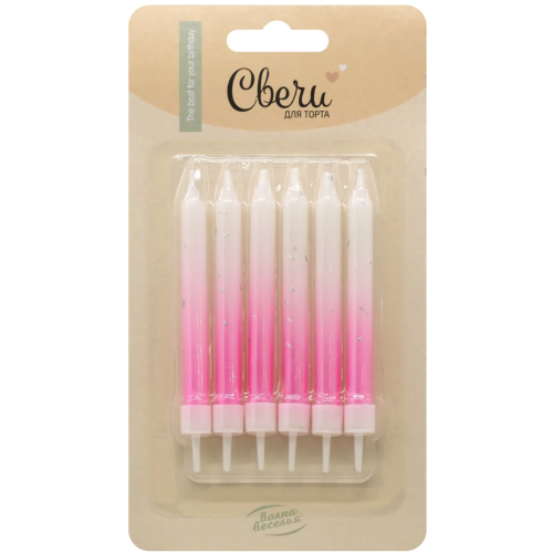 Свечи Серебряные искры, Белый/Розовый, Градиент, с блестками, 0,7*8 см, 6 шт. с держат., 802961