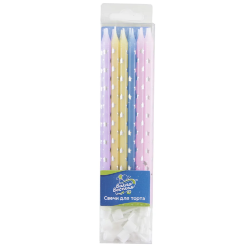 Свечи Серебряные звезды, Ассорти, Металлик, 0,6*12 см, 12 шт. с держат., 802719