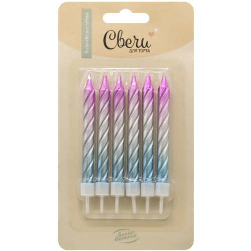 Свечи Северное сияние, Градиент, 0,7*8 см, 6 шт. с держат., 802975
