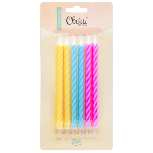Свечи Спирали, Ассорти, 0,7*11 + 1 см, 6 шт. с держат., 803034