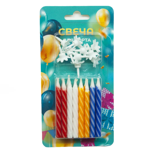 Свечи Спирали, Ассорти, 6 см, 24 шт. с держат., 1933