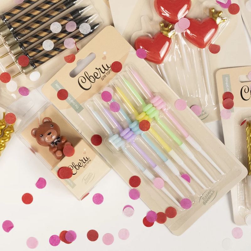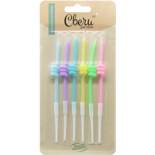 Свечи Спирали, Ассорти, Макарунс, 0,35*8,5 + 5 см, 6 шт. с держат., 802967