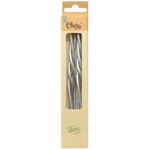 Свечи Спирали Люкс, Серебро, Металлик, 0,4*13 + 3 см, 6 шт. с держат., 802939