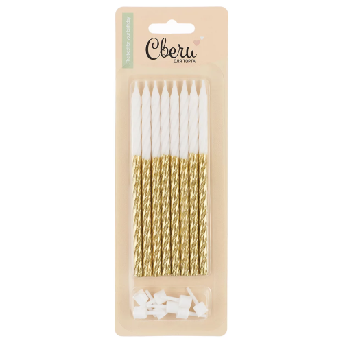 Свечи Спирали Люкс, Золото, Металлик, 0,6*12 см, 8 шт. с держат., 802713