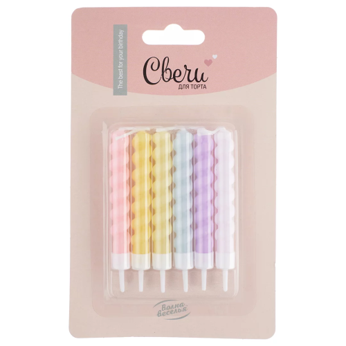 Свечи Спирали, Макарунс, Ассорти, 8 см, 6 шт. с держат., 183557