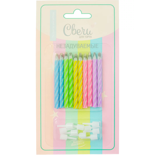 Свечи Спирали, Негаснущие огни, Нежный микс, Макарунс, 0,5*5,5 см, 10 шт. с держат., 639244