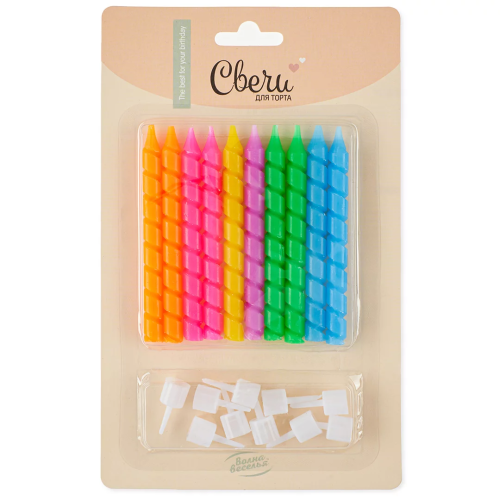 Свечи Спирали, Яркий микс, 0,75*8 + 2 см, 10 шт. с держат., 803015