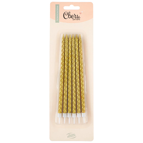 Свечи Спирали, Золото, Металлик, 0,6*14 + 2 см, 6 шт. с держат., 802947