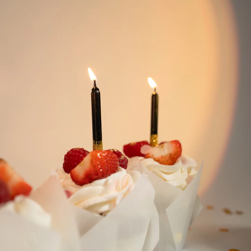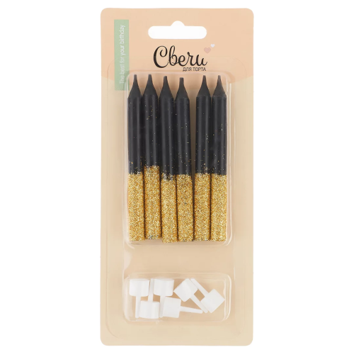 Свечи Сверкающий глиттер, Черный/Золото, с блестками, 0,77*8 см, 6 шт. с держат., 802739