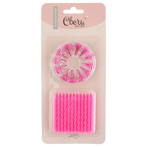 Свечи Сверкающий глиттер, Розовый, с блестками, 0,5*6 см, 24 шт. с держат., 6214502