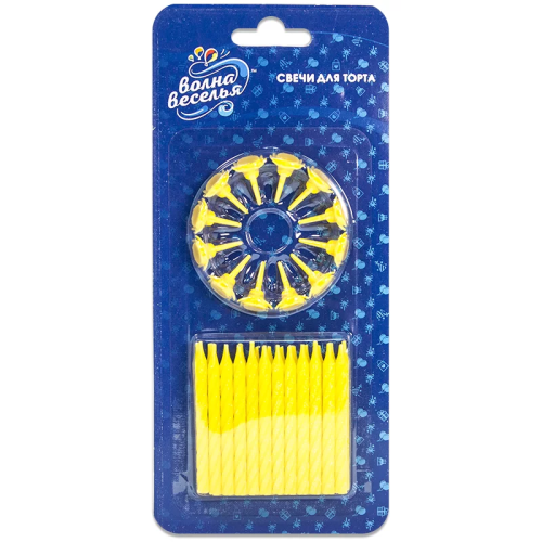 Свечи Сверкающий глиттер, Желтый, с блестками, 0,5*6 см, 24 шт. с держат., 6214504