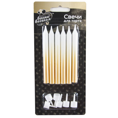 Свечи Сверкающие искры, Белый/Золото, Металлик, 0,77*8 см, 6 шт. с держат., 802733