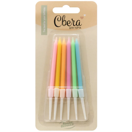 Свечи Светлый микс, Ассорти, Макарунс, 0,4*7 см, 6 шт. с держат., 802927