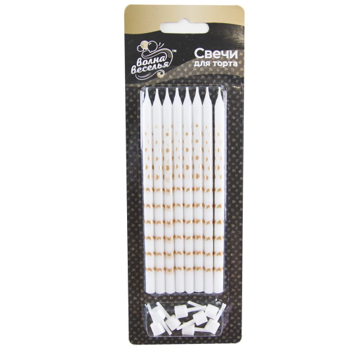 Свечи Точки и полосы, Белый/Золото, Металлик, 0,6*12 см, 8 шт. с держат., 802745