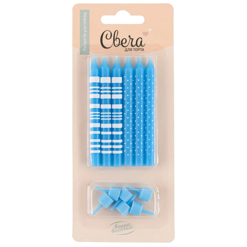 Свечи Точки и полосы, Голубой, 8 см, 6 шт. с держат., 132439