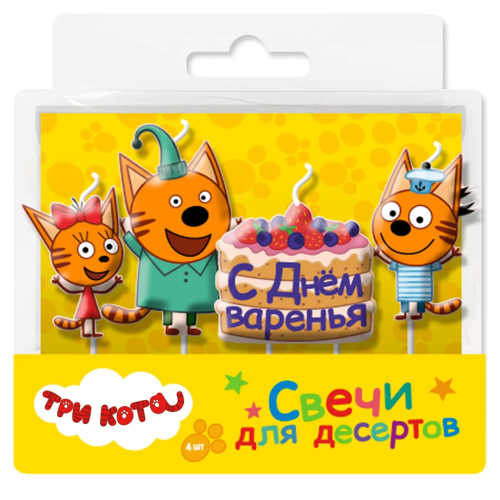 Свечи Три Кота, С Днем Варенья!, 7,5 см, 4 шт. с держат., 703054
