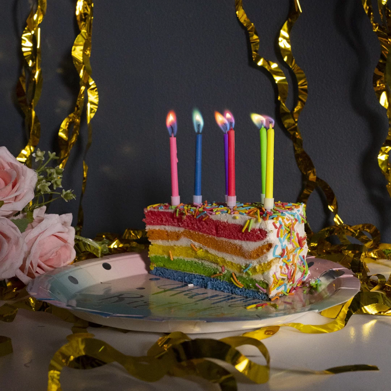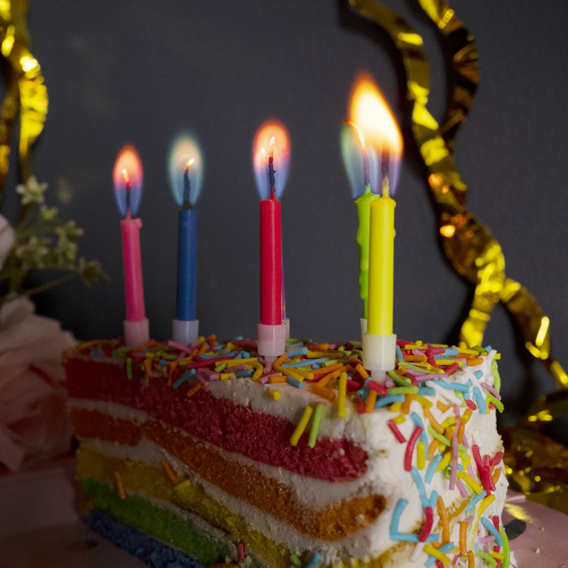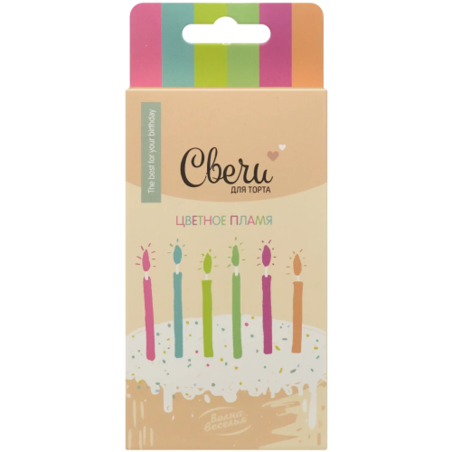 Свечи Цветное пламя, Ассорти, 0,5*6 + 3 см, 6 шт. с держат., 802942