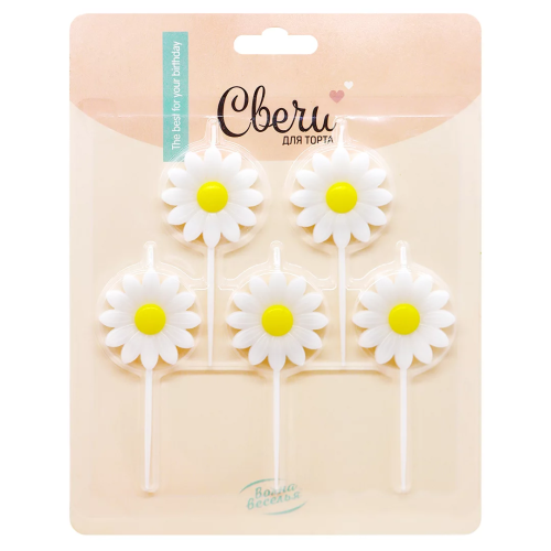 Свечи Цветок, Ромашка, на шпажке, 3,5*3,5 + 4 см, 5 шт. с держат., 803019
