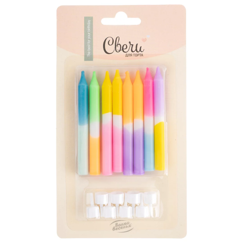 Свечи Волшебный микс, Ассорти, Градиент, 0,55*8 + 1 см, 8 шт. с держат., 630256