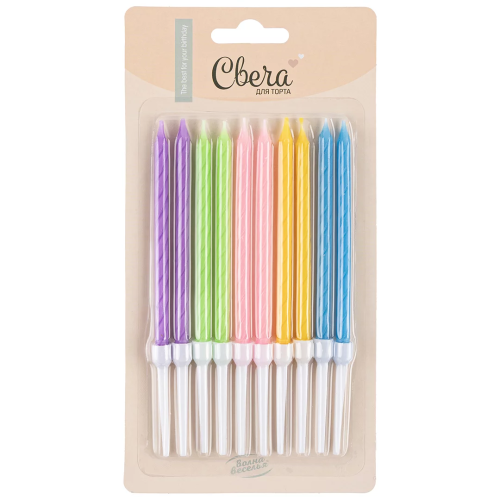 Свечи Яркий микс, 10 см, 10 шт. с держат., 132517